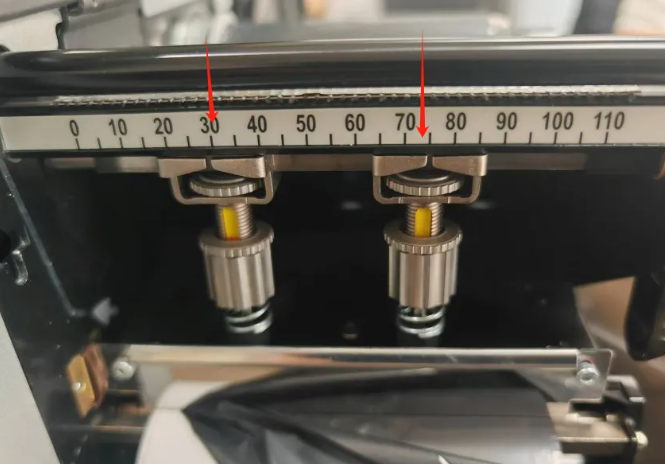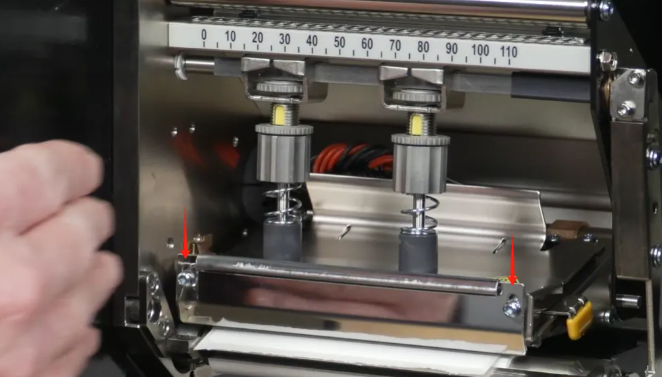 To ensure proper separation, adjust the peeler blade at the media exit, as its position sets the separation timing and guides the ribbon. First, check that the blade is level and free of scratches. Then, use a Phillips screwdriver to make fine adjustments to the left and right ends of the blade guide, which will alter the pressure applied to the ribbon.