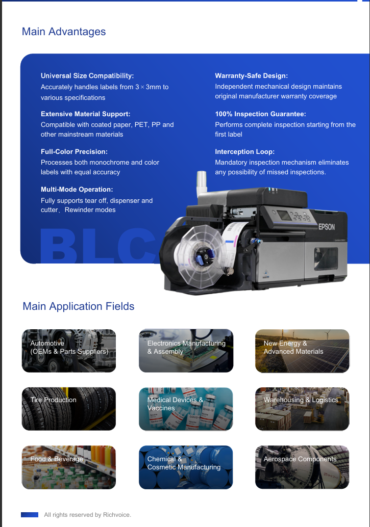 BLC proudly stands as the world’s first inspection system to support Epson C8030 color printing inspection, breaking boundaries and setting a new gold standard for the industry. Designed for industrial-grade reliability, BLC guarantees full-process ...